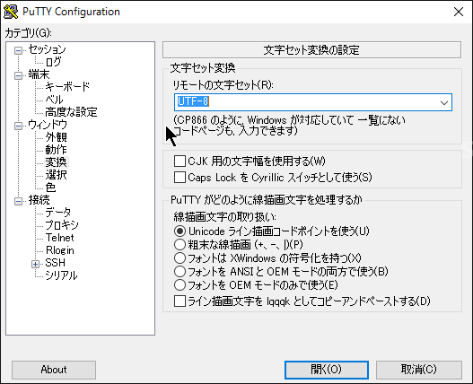 文字コードは UTF-8 にしないと日本語が文字化けます。