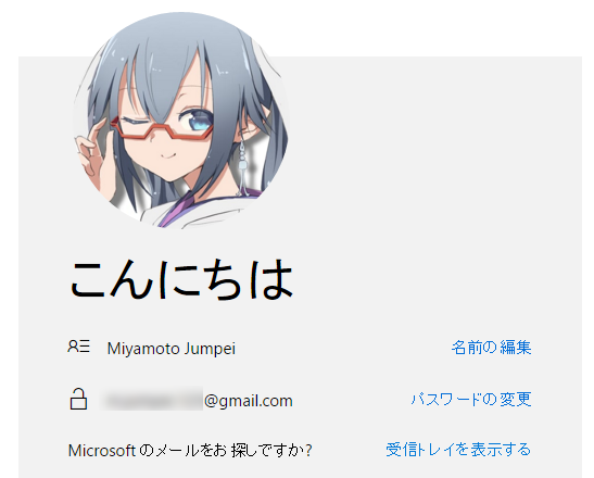 私の Microsoft アカウントは元々 Gmail で登録したのですが、