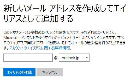 これで、outlook.jpアドレスを取得することができました。