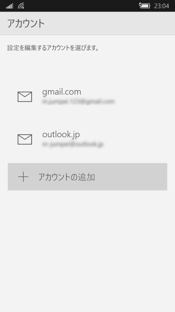 「アカウントの追加」をタップ