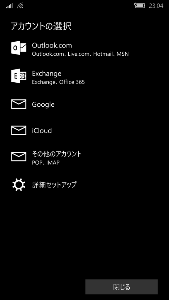ここで「Exchange」を選択。Outlook.comではありません