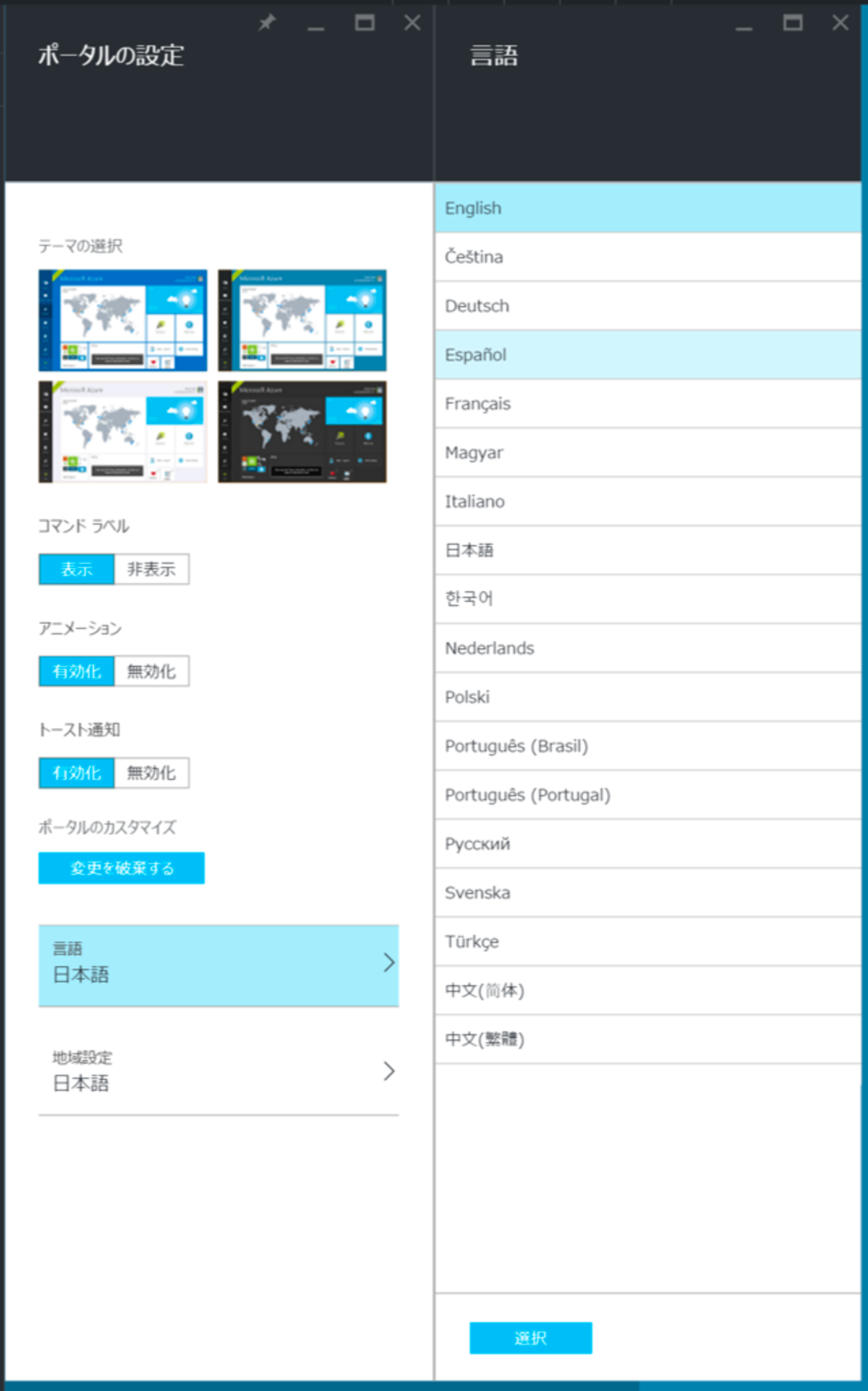 言語で英語に切り替えて「選択」を押します。