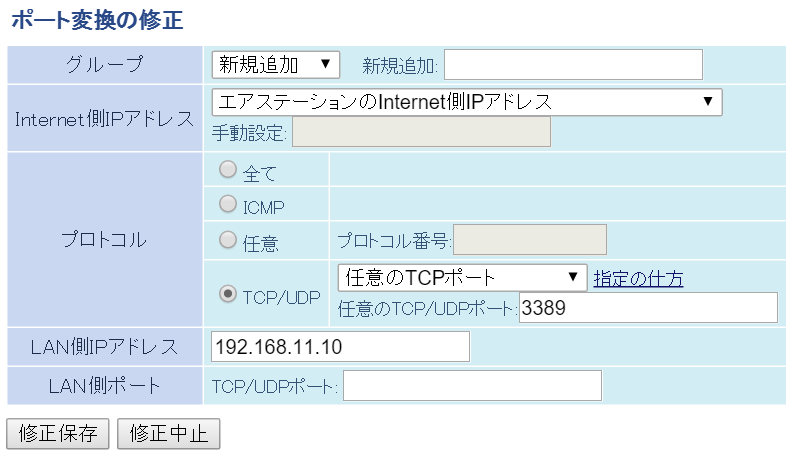 リモートデスクトップはポート番号3389番と決まっているので、ルーターでポート開放を行いましょう。