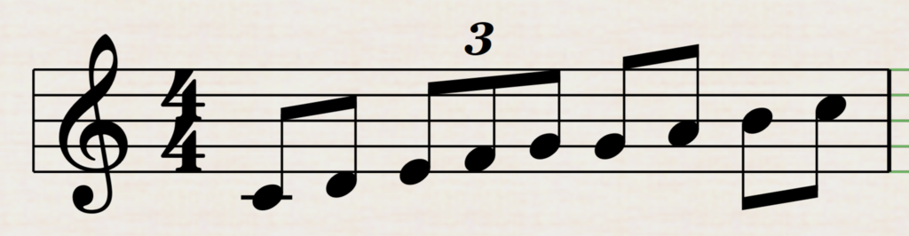 八分音符の場合は三連符の音の長さに自動調節されます。 つまり、「後からここは三連符にしよう」といったときに音符を書き直さなくても良い機能…ということでしょうか。
