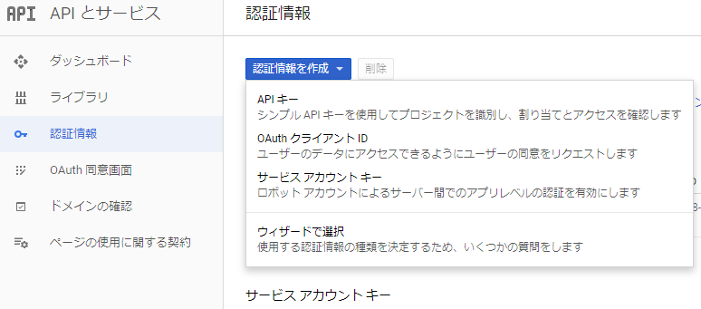 左側メニューの「ライブラリ」または、ダッシュボードページ上部「APIとサービスを有効化」をクリックし、ライブラリへ。